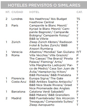 LONDRES – PARÍS – LUCERNA – ZÚRICH – VERONA – VENECIA – ROMA – FLORENCIA – PISA – COSTA AZUL – BARCELONA – ZARAGOZA – MADRID
