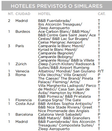 MADRID – BURDEOS – BLOIS – PARÍS – LUCERNA – ZÚRICH – VERONA – VENECIA – ROMA – FLORENCIA – PISA – COSTA AZUL – BARCELONA – ZARAGOZA – MADRID