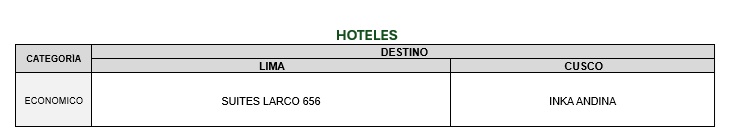 - 02 noches de alojamiento en Lima con desayunos.
