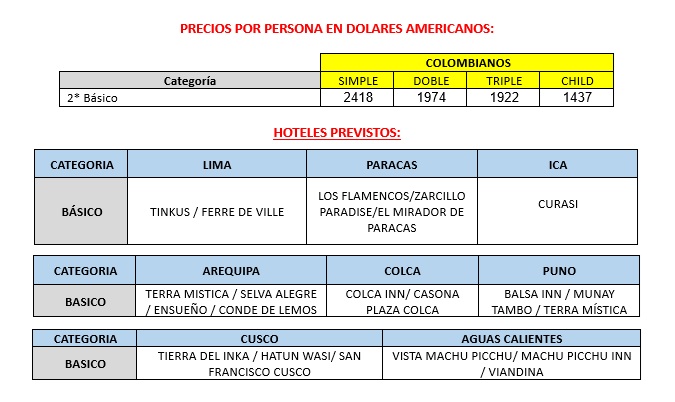 - 02 noches de alojamiento en Lima con desayunos.