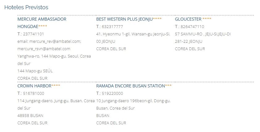 - Entradas: DMZ Cheorwon (Segundo Túnel, Observatorio de Paz, fábrica licor típico de arroz), Metro Seúl, Changdeokgung Palace, Bukchon Hanok Village, Memorial de la Guerra de Corea , Palacio de Gyeongbokgung , Fortaleza de Suwon, Palacio de verano de Hwaseong Haenggung , Hanok Village , Bosque de Bambú de Juknokwon y Museo del Bambú , Templo Budista de Haeinsa , Templo de Haedong Yongung, Memorial de las Naciones Unidas , Aldea cultural de Gamcheon