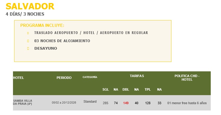 Política de menores: 01 menor free hasta 4 años, sin ocupar asiento // Opera todos los días